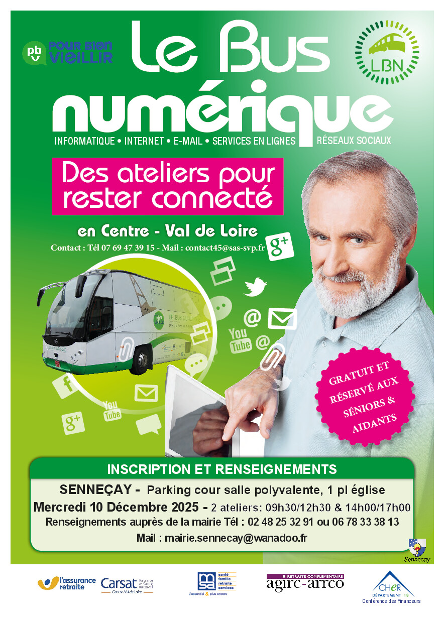 La commune de Senneçay accueille le bus numérique dans la cour de la salle polyvalente