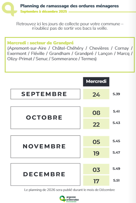 (le planning 2026 paraitra en décembre) et