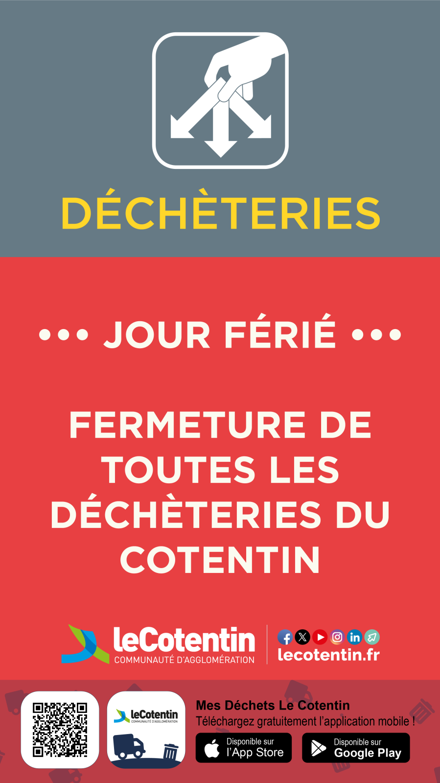👉 Vendredi 1er novembre et lundi 11 novembre, toutes les déchèteries seront fermées, comme à chaque jour férié.