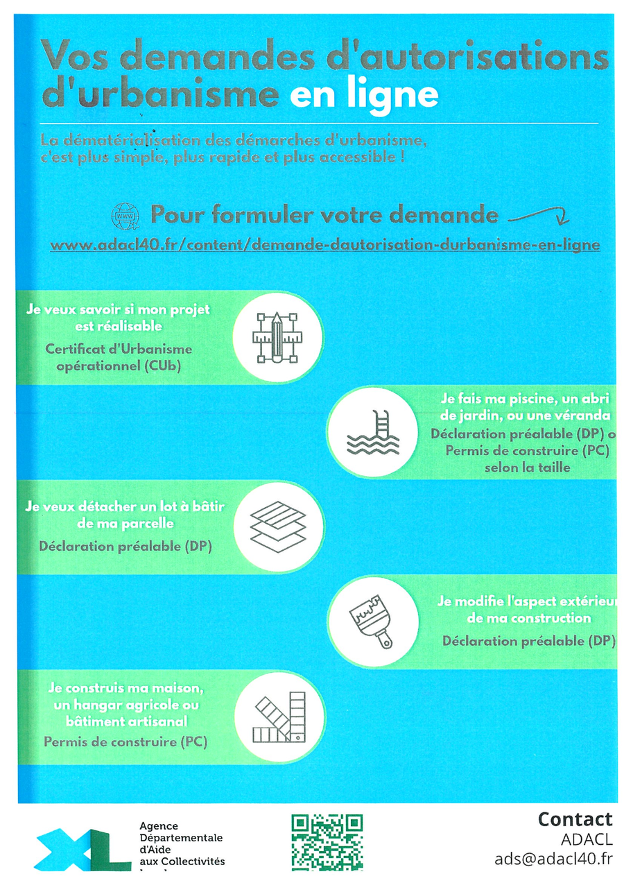 Pour toutes vos demandes d'uranismes, permis de construire, demande préalable de travaux, CU, vous pouvez faire la démarche en ligne.
