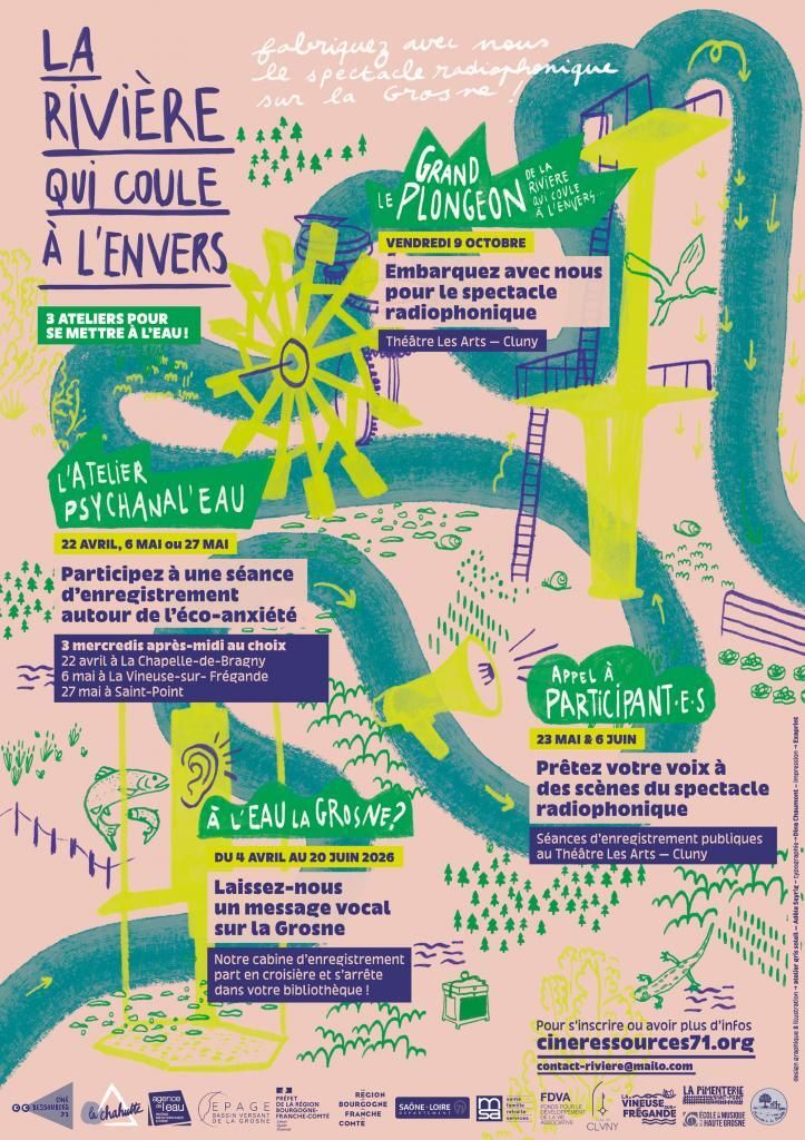 L’équipe de La Rivière qui coule à l’envers sera en résidence au Théâtre les Arts à Cluny pour enregistrer la fiction sonore, qui sera présentée sous forme de spectacle en octobre 2026. Participez à un tournage radiophonique et prêtez votre voix pour cette création atypique !