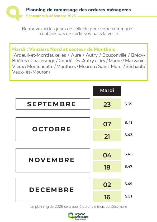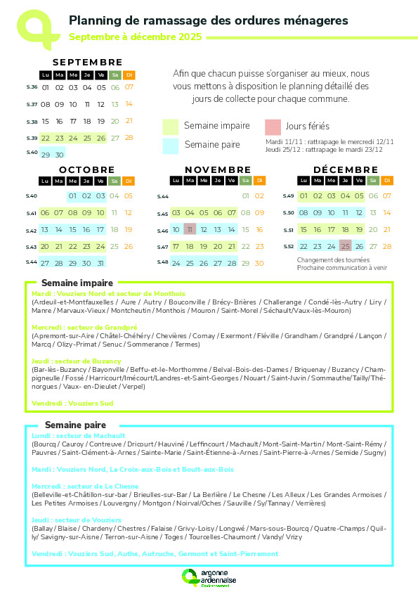 Pour maîtriser nos redevances de déchets ménagers, nous avons optimisé la collecte : elle se fait désormais une semaine sur deux. Cela permet des tournées à pleine charge et de maitriser les coûts.