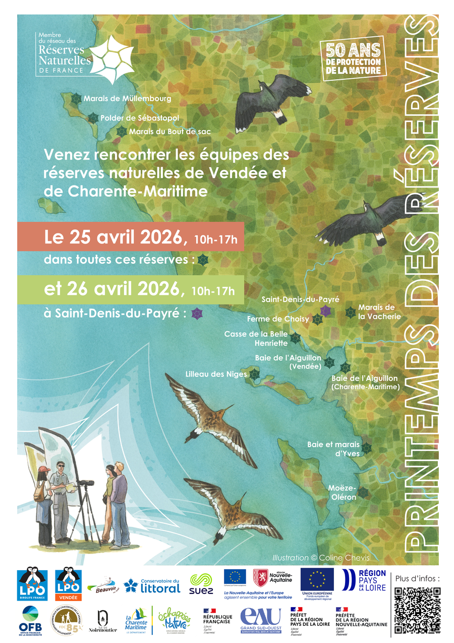 Les portes ouvertes de la réserve naturelle nationale de la baie et du marais d’Yves auront lieu le 25 avril 2026 de 10h à 17h