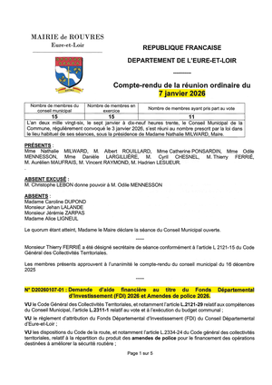 Voici le compte-rendu du conseil municipal du 7 janvier 2026 approuvé en séance du 11/02/2026.
