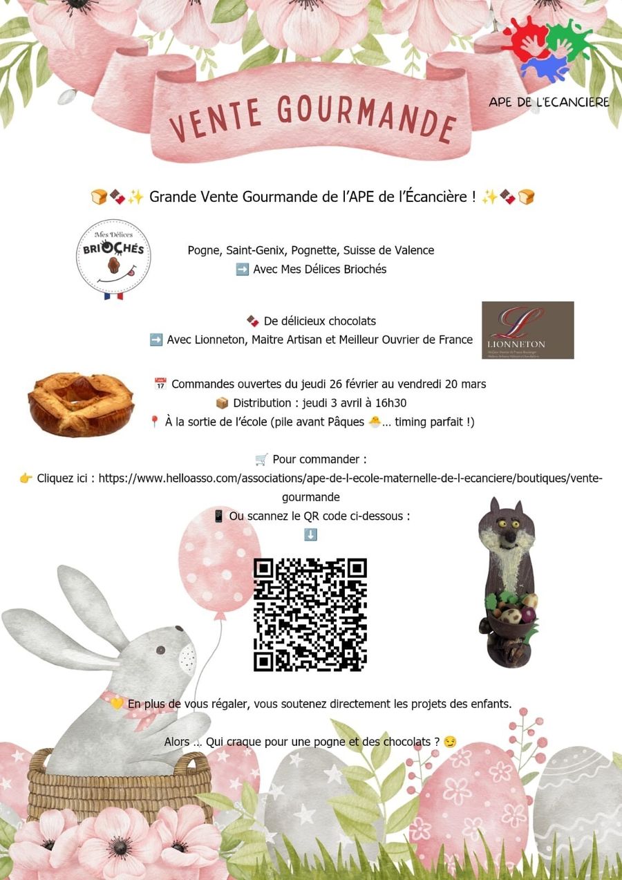 L’Association des Parents d’Élèves (APE) de l’école maternelle de l’Écancière organise actuellement une vente gourmande solidaire au profit des projets scolaires des enfants.
