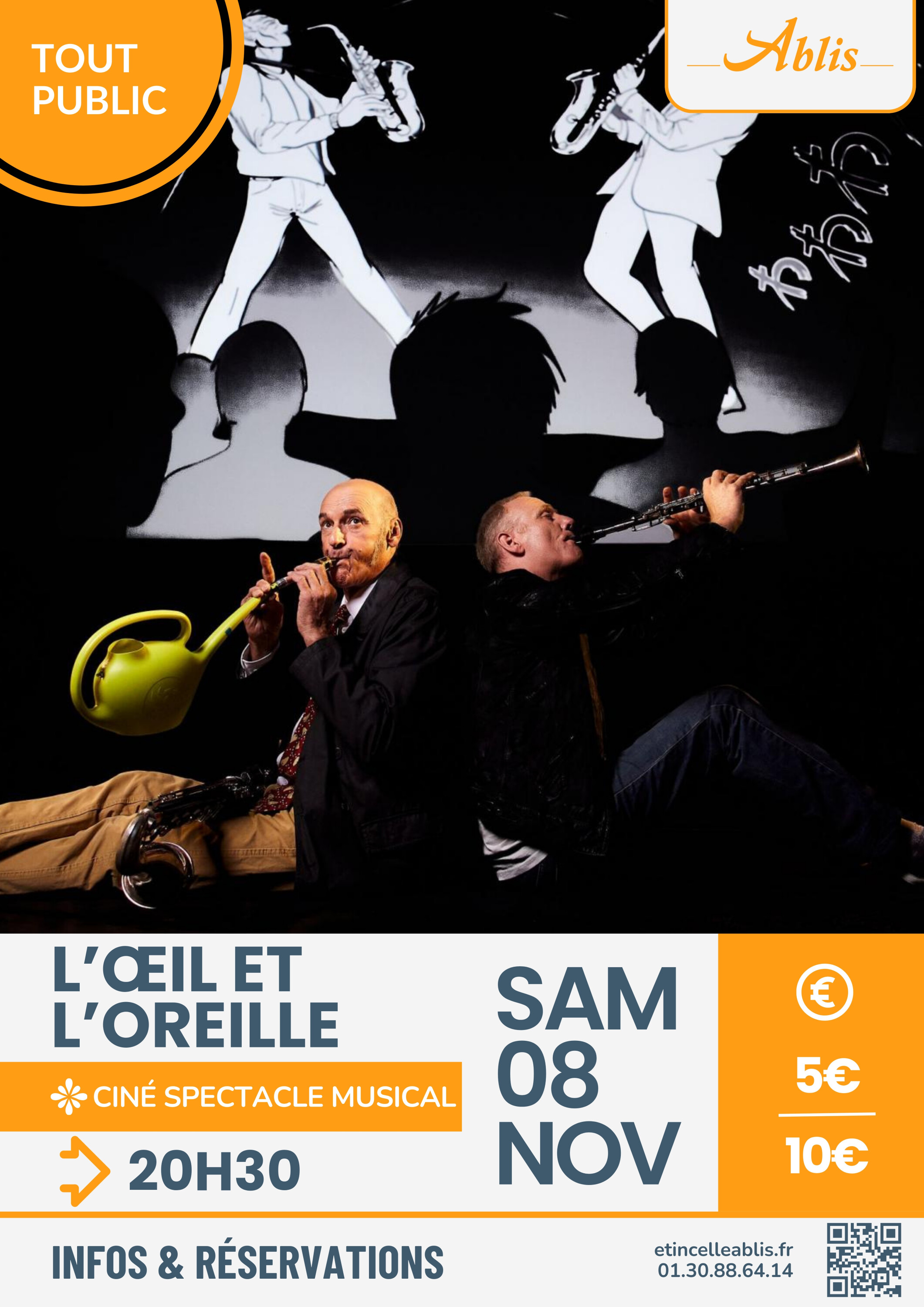 Le samedi 8 novembre 2025, le spectacle L’Œil et l’Oreille sera présenté à l’Espace Culturel L’Étincelle d’Ablis.