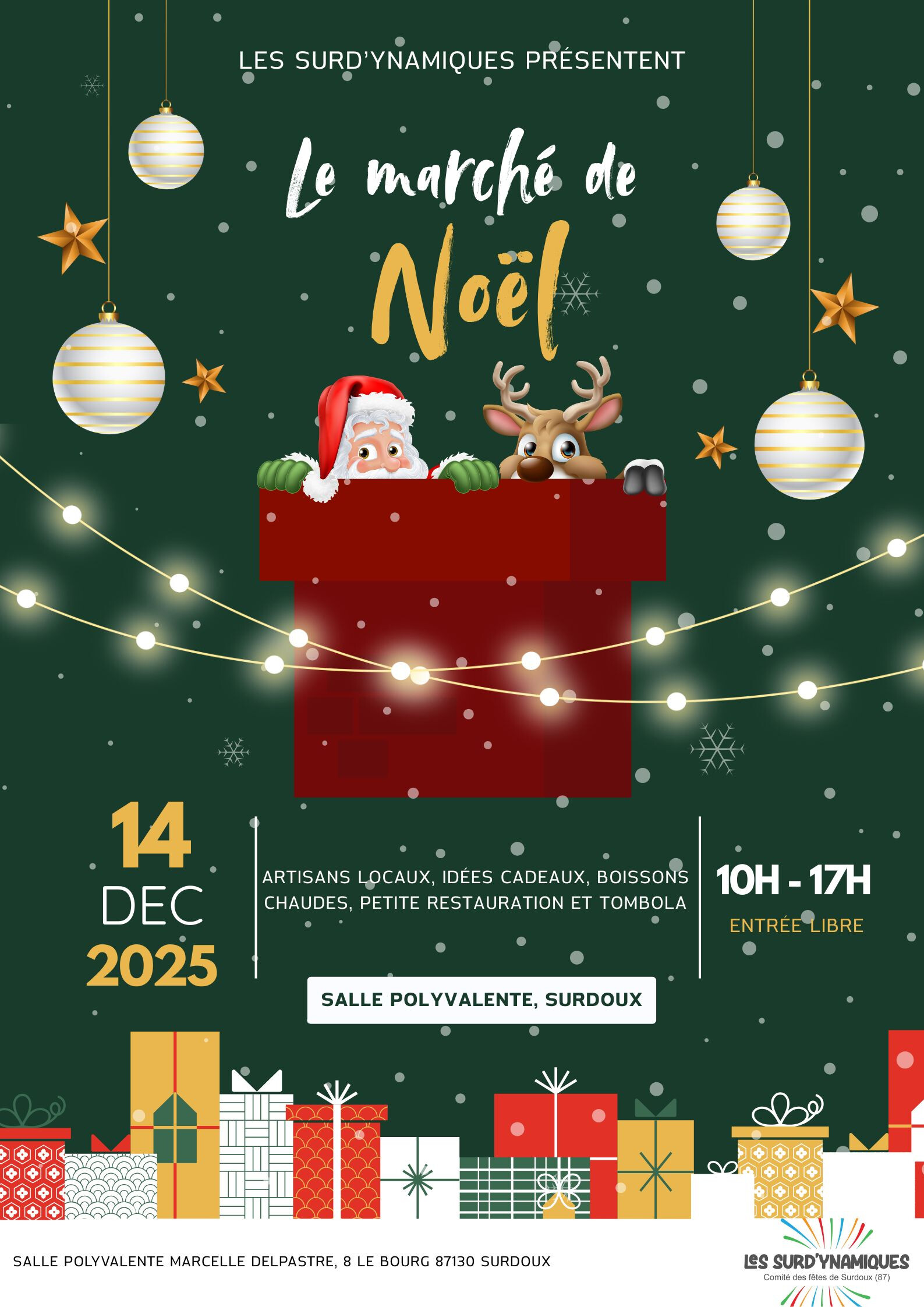 🎅Le comité des fêtes Les Surd'ynamiques vous donne rendez-vous le dimanche 14 décembre 2025, de 10h à 17h, dans la salle Marcelle-Delpastre, pour son premier marché de Noël !