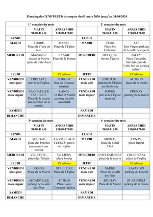 Sur les 118 communes qui composent notre territoire, ils ont du, bien évidemment, du faire des choix. Voici le planning prévisionnel de leur présence jusqu'à août.