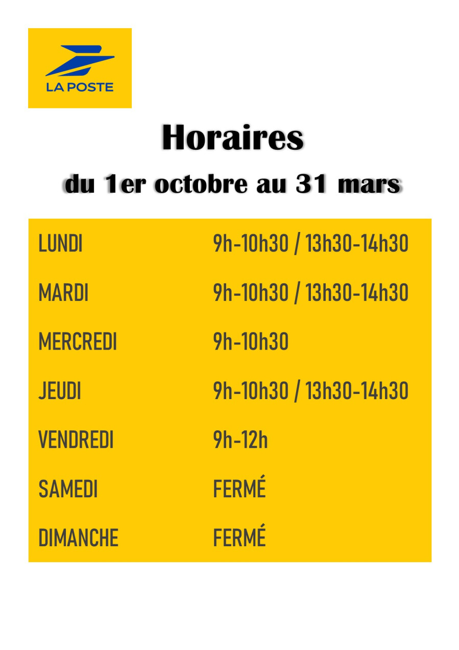 Jour ouvrables : 8h30 à 12h et de 14h30 à 19h30
