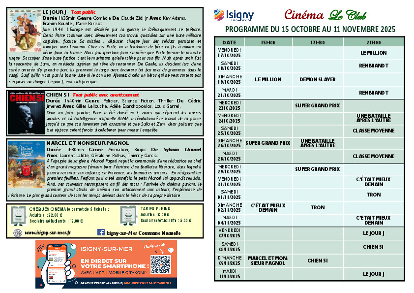 Le Lundi : 9h00-13h00 et 14h00-15h30