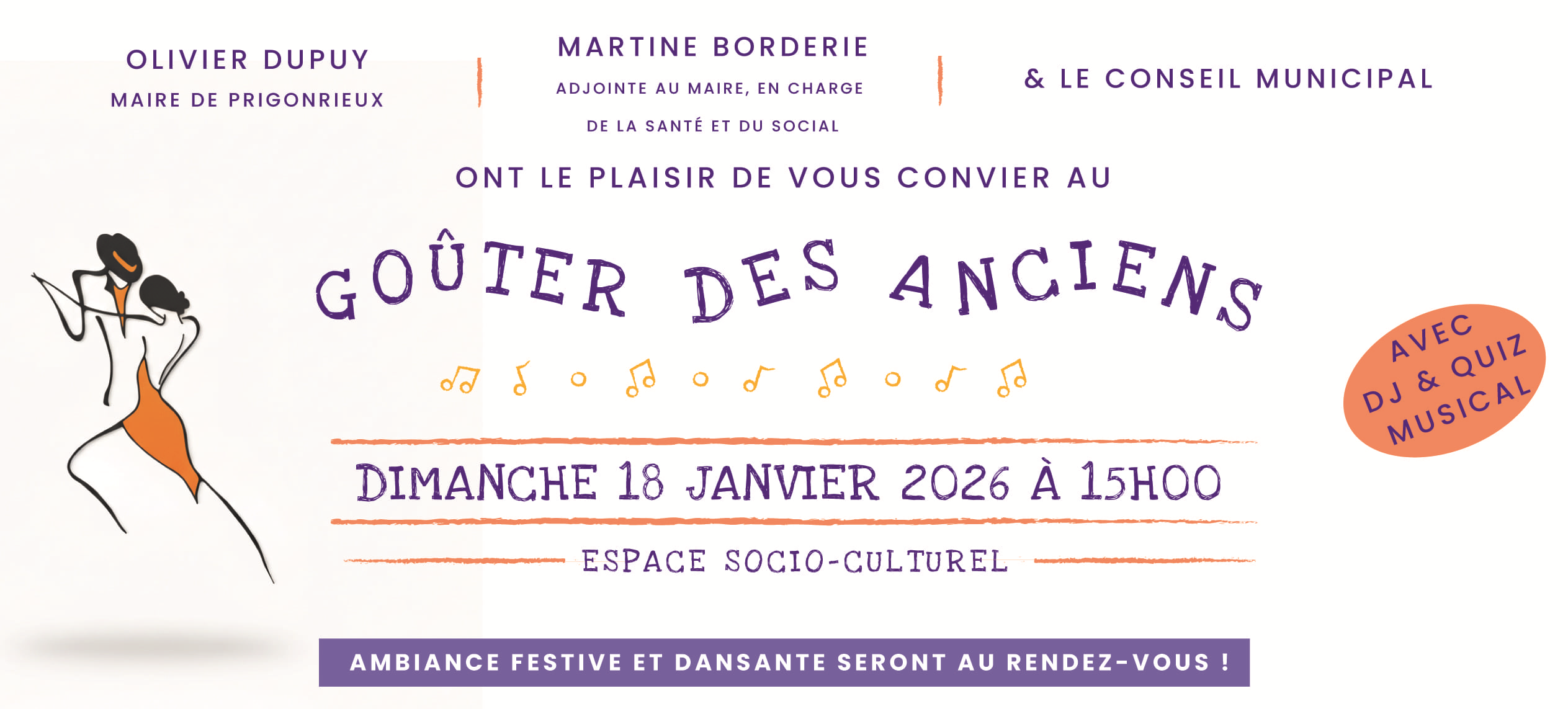 Olivier DUPUY, Maire de Prigonrieux, et l'ensemble du Conseil Municipal vous invitent à la cérémonie des Vœux du Maire.