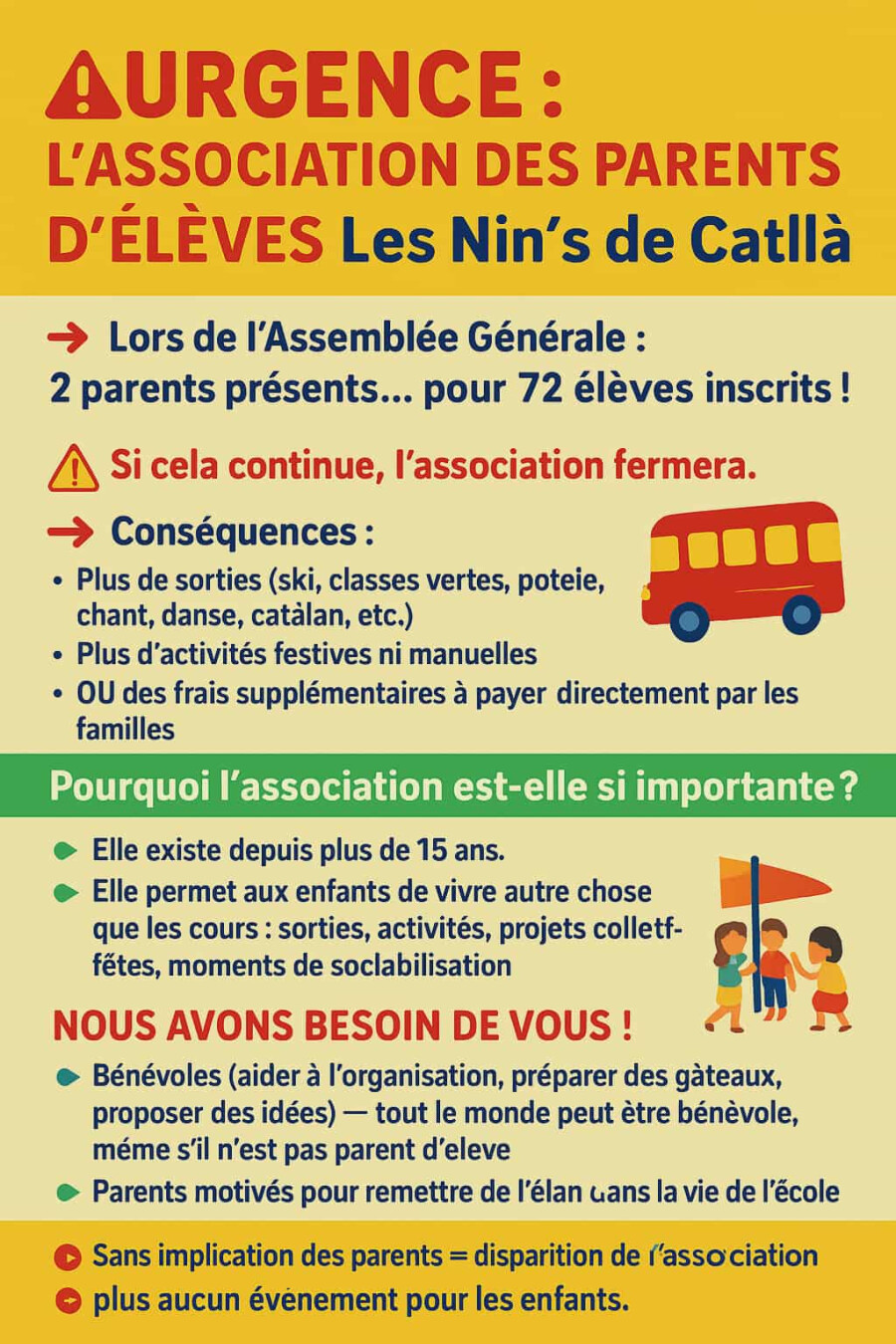 L'association des parents d'élèves "les Nin's de Catllà" communique :