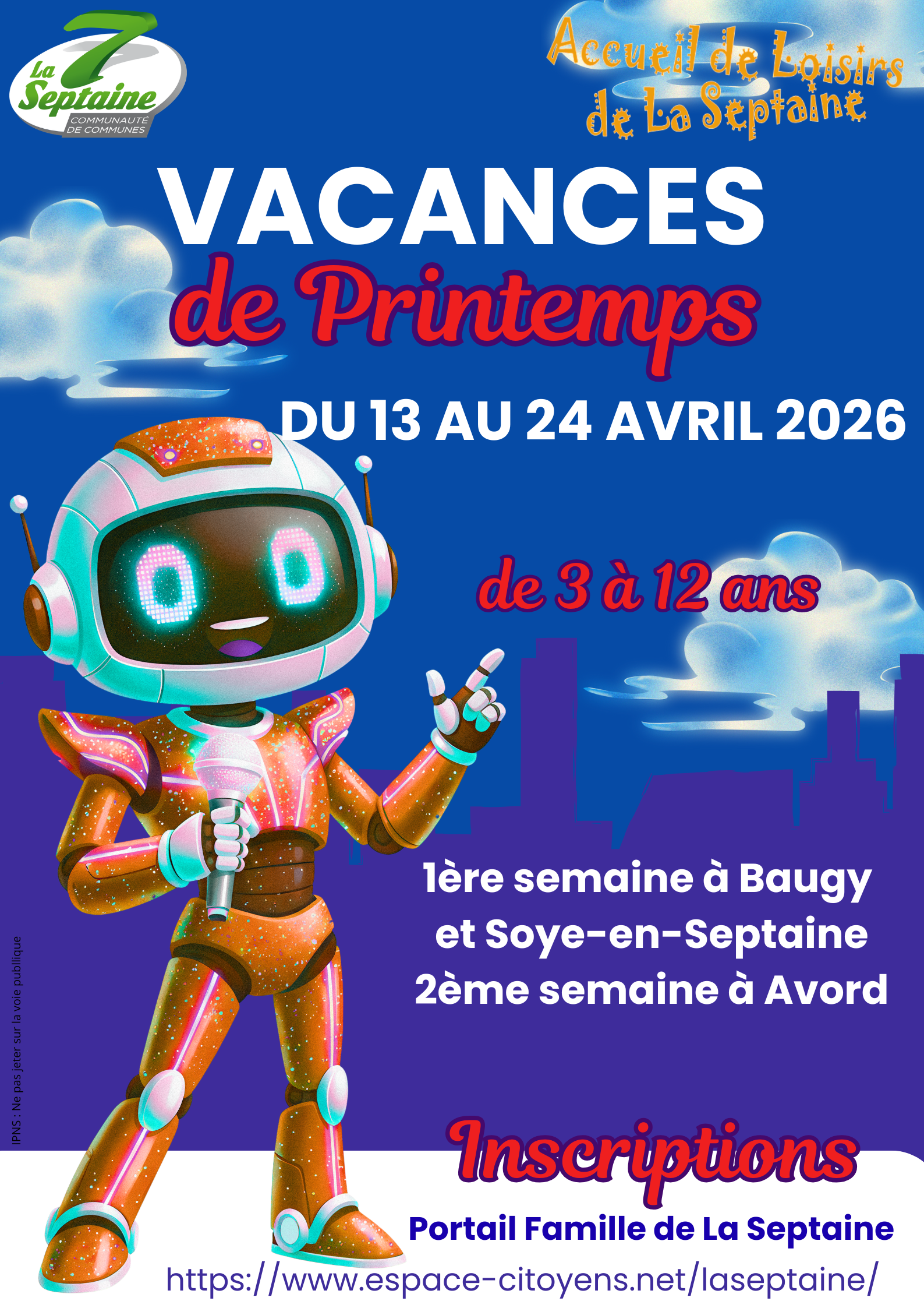 Les inscriptions pour les Accueils de Loisirs de La Septaine pour les prochaines vacances de Printemps du 13 au 24 avril 2026