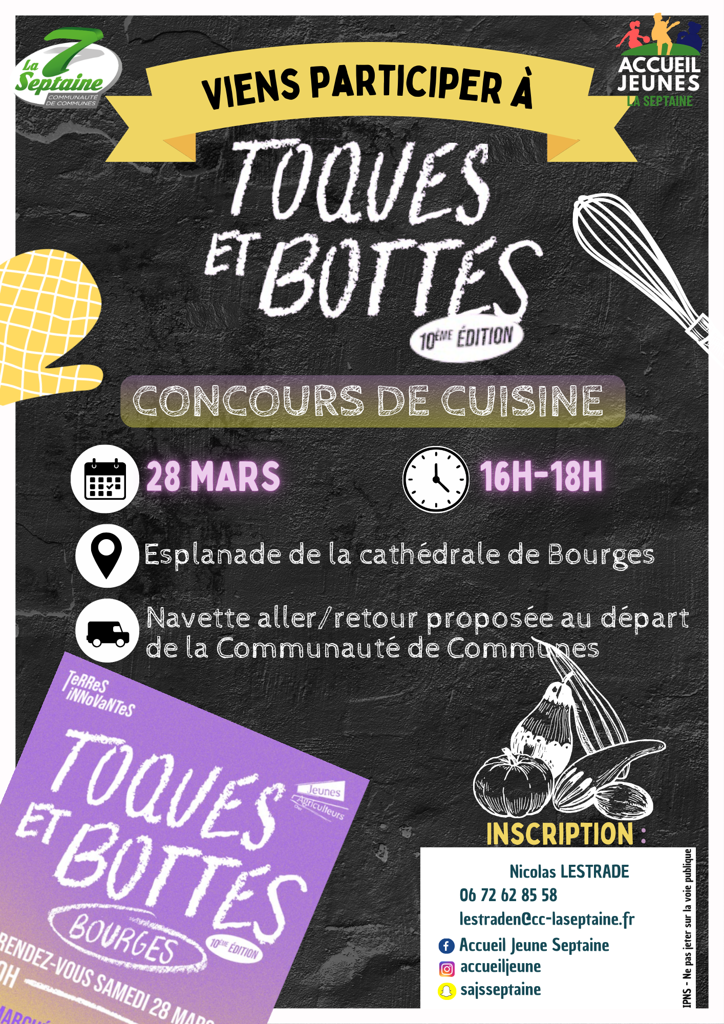 l'Accueil Jeunes de La Septaine participe à la 10 ème édition de "Toques et Bottes" organisée par les Jeunes Agriculteurs du Cher en partenariat avec le PERT Centre-Cher, à Bourges sur le parvis de la cathédrale Saint-Etienne.