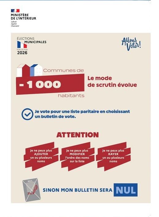 Réforme du mode de scrutin dans les communes de moins de 1000 habitants.