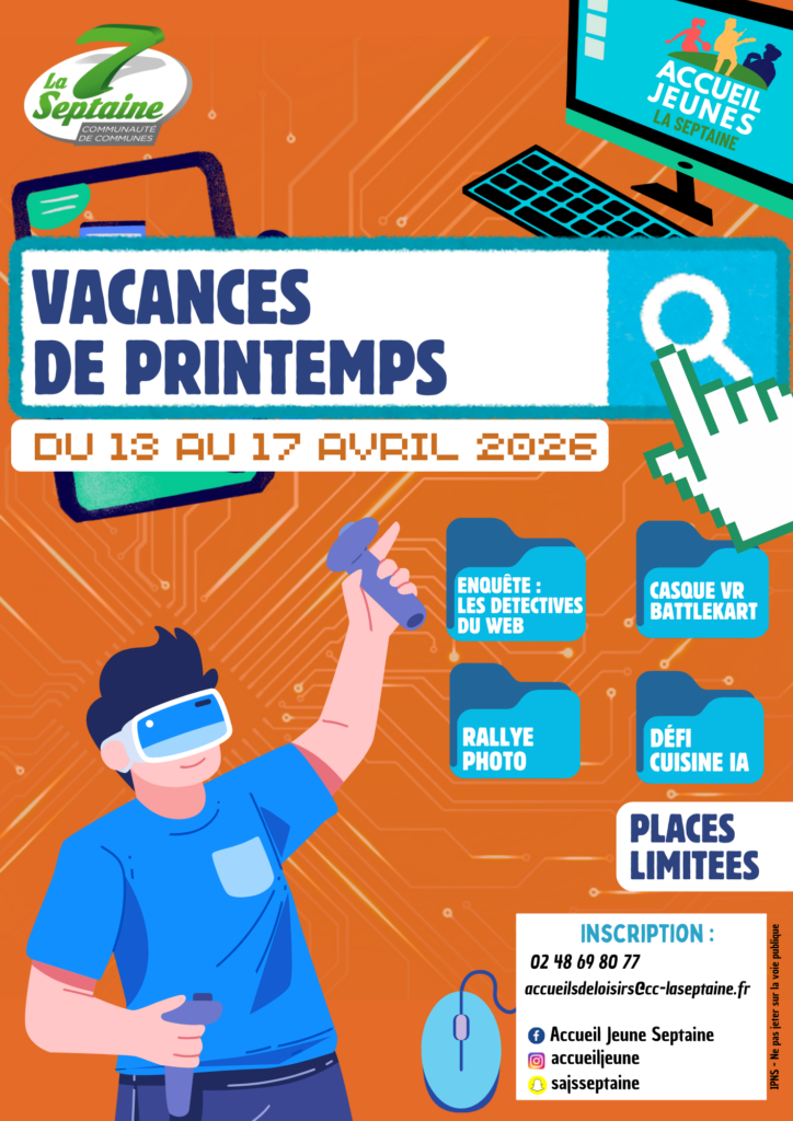 Les inscriptions pour les Accueils de Loisirs de La Septaine pour les prochaines vacances de Printemps du 13 au 24 avril 2026