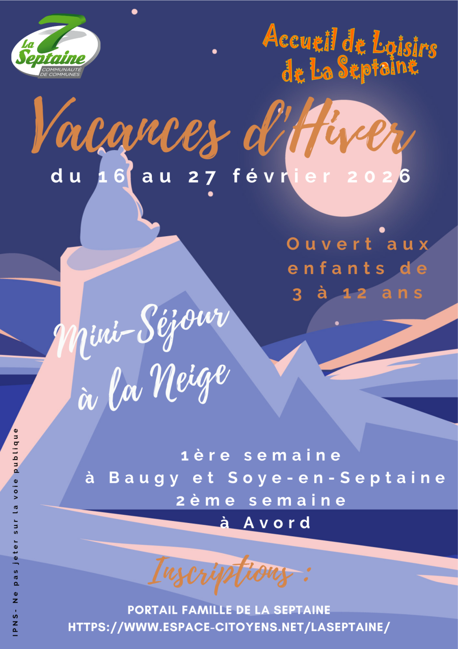 L'Accueil de Loisirs de la Septaine ouvre ses portes pour les vacances d'hiver du 16 au 27 février 2026.