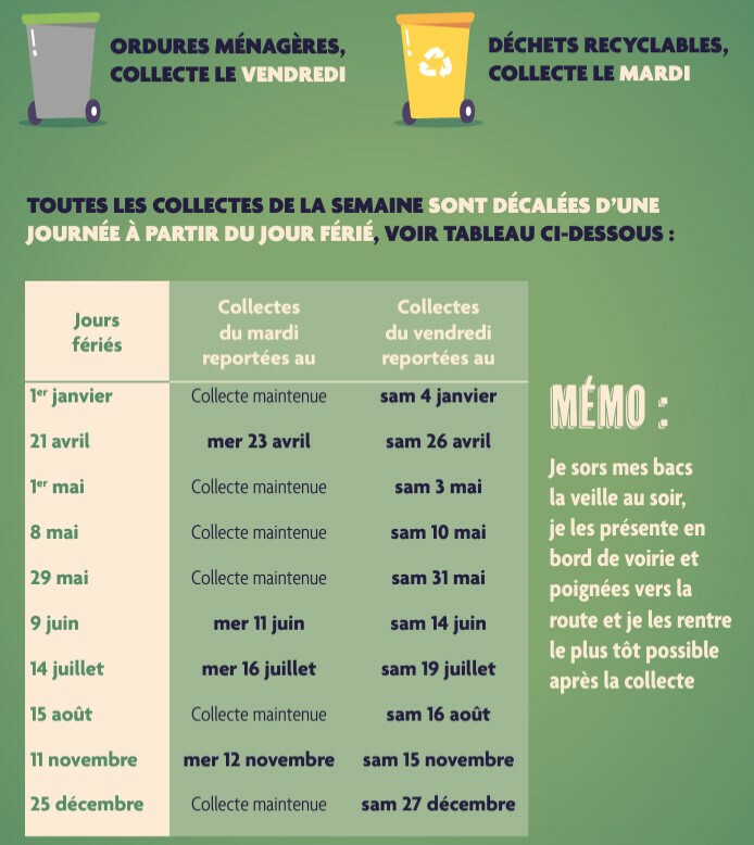 TOUTES LES COLLECTES DE LA SEMAINE SONT DÉCALÉES D’UNE