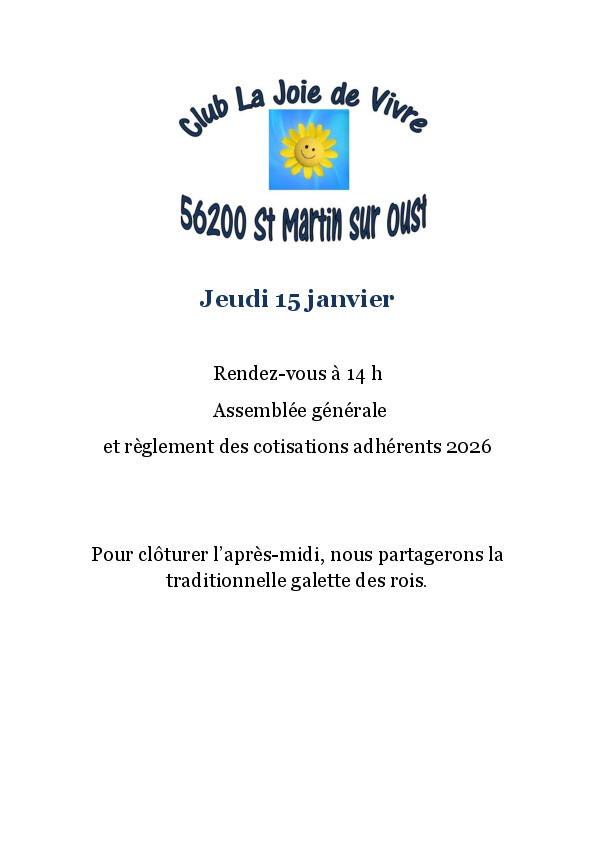 Le Club "La joie de vivre" vous convie à son Assemblée Générale