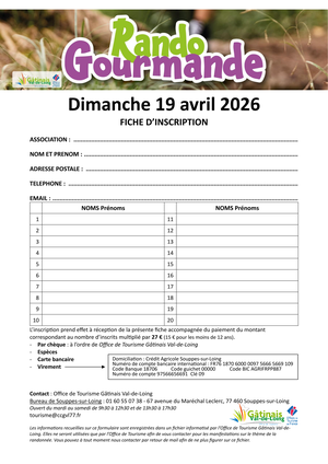 L’Office de Tourisme Gâtinais Val-de-Loing a le plaisir de vous informer du retour de sa Rando Gourmande, qui se tiendra le dimanche 19 avril 2026, au départ de la salle des fêtes d’Égreville (77620).
