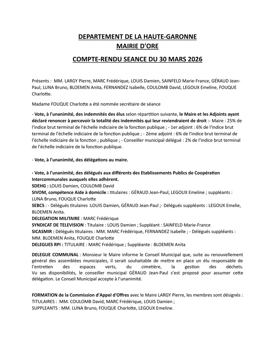 Compte rendu du Conseil municipal de Ore