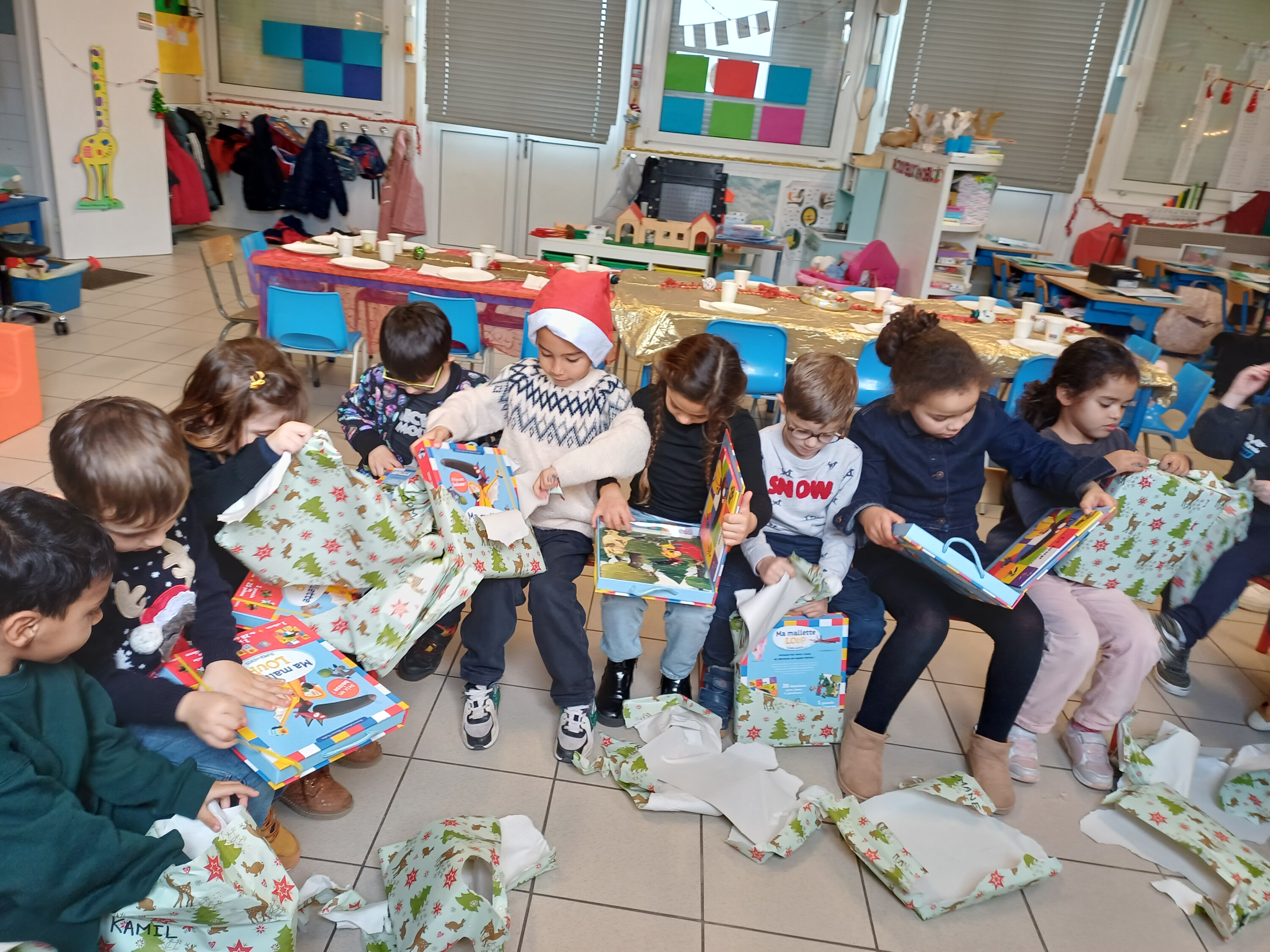 Puis l'après-midi, le goûter de Noël avec les copains et la découverte des cadeaux que le Père-Noël avaient déposé à l'école.