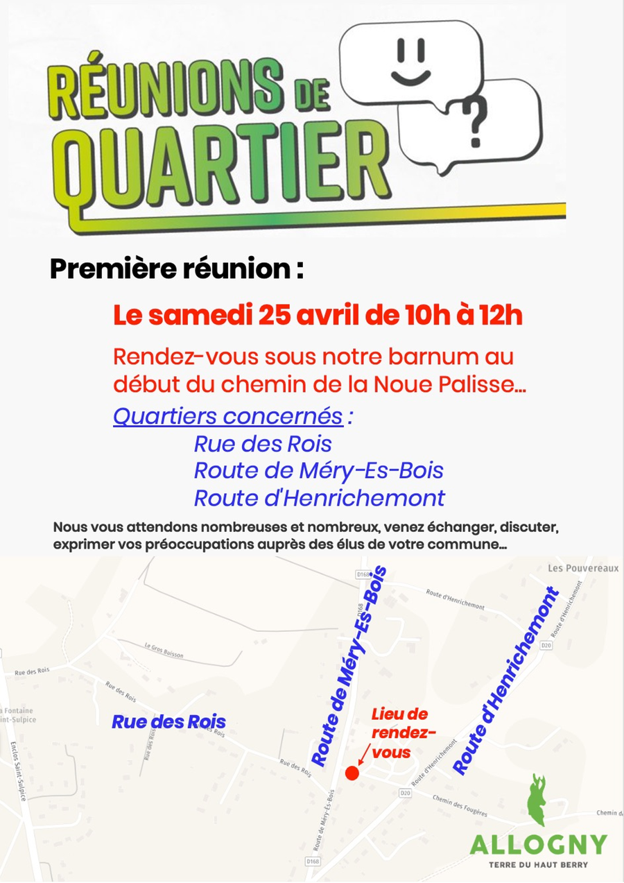 Dans cette optique, nous organisons une série de réunions de quartiers, la première réunion aura lieu :