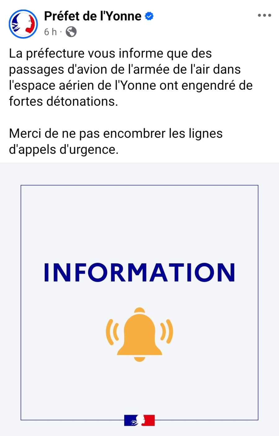 Confirmation par un communiqué sur le Facebook de la Préfecture de l'Yonne.