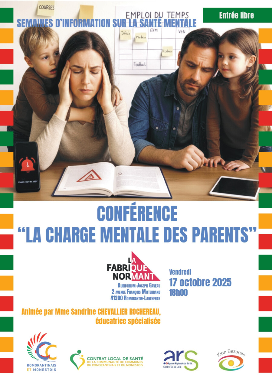 Organisée par le CLS de la Communauté de Communes du Romorantinais et du Monestois, cette conférence vous permettra de mieux comprendre la charge mentale, ses impacts au quotidien et des pistes pour mieux la gérer.