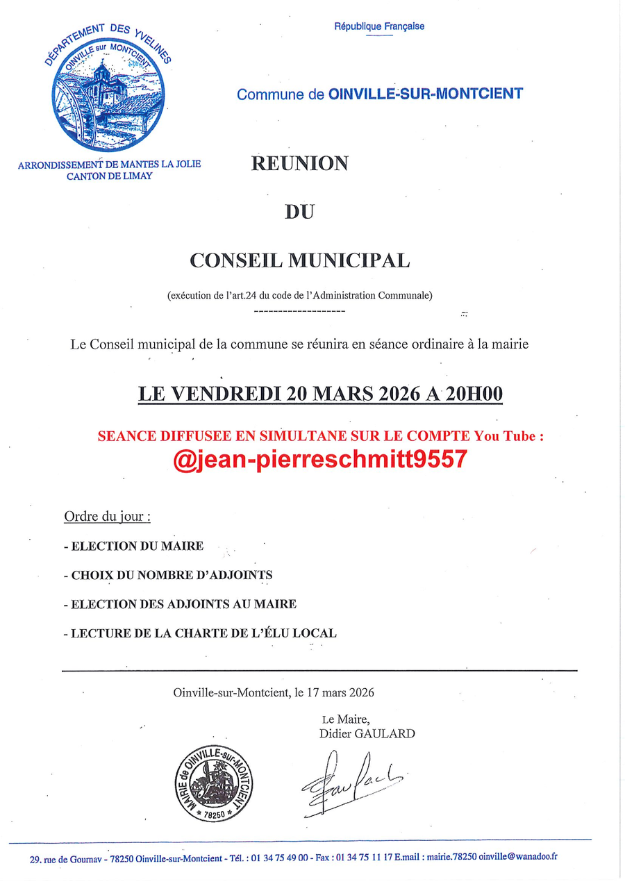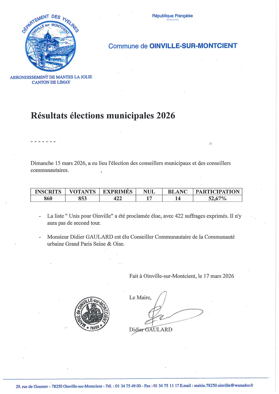 En raison de la brocante à Oinville-sur-Montcient prévue le lundi 06 avril 2026, plusieurs