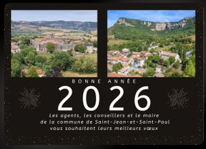La cérémonie des voeux de la commune de Saint-Jean-et-Saint-Paul se déroulera le dimanche 18 janvier 2026 à 11h dans la salle communale de Saint Paul des Fonts. Elle sera suivie d'un apéritif convivial. Nous vous y attendons nombreux.