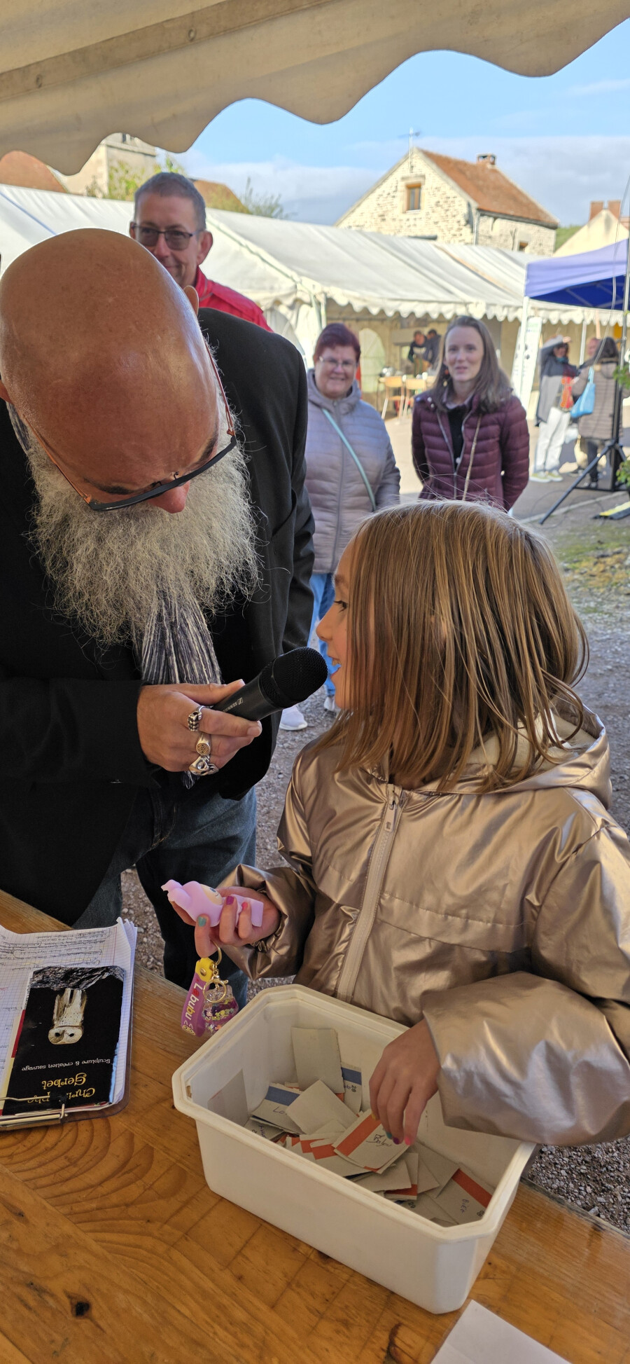 sort pour la tombola, la sculpture en bois est partie à Clomot.