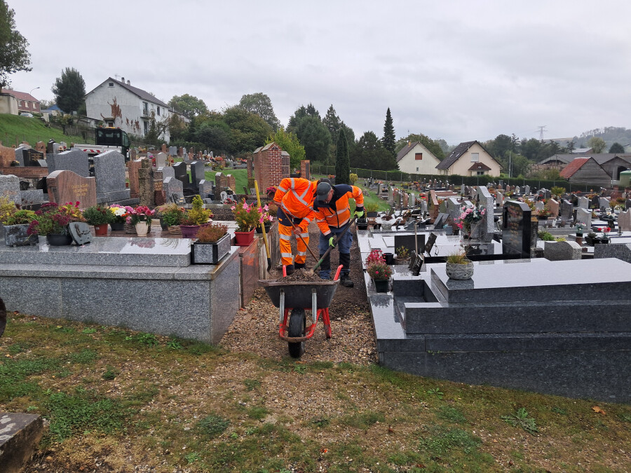 Un programme d’enherbement progressif est en cours au cimetière communal.