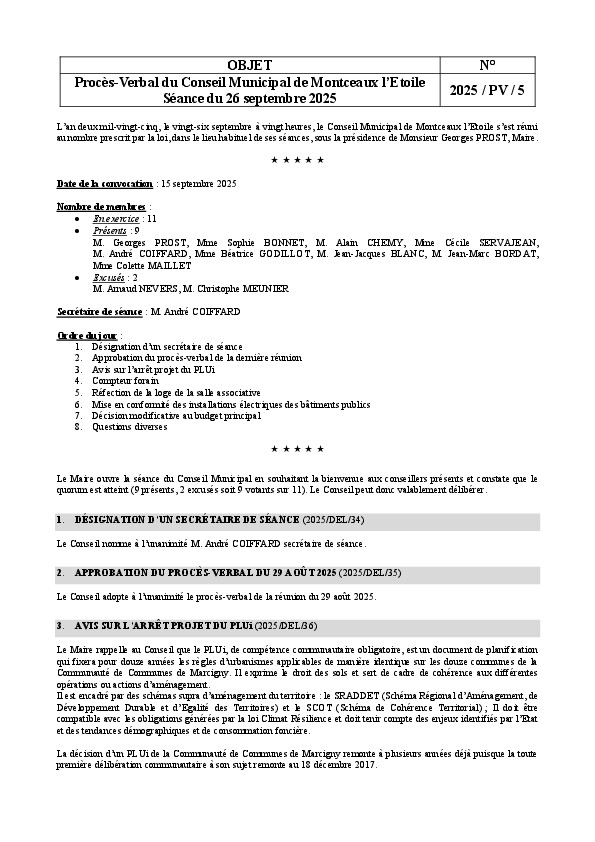 Le 30 juin 2025, le Conseil communautaire a arrêté le projet de Plan Local d'Urbanisme Intercommunal (PLUI).