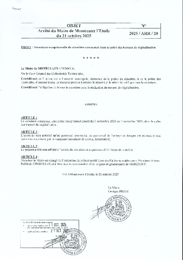 7 novembre 2025 et nécessitera la fermeture du cimetière.