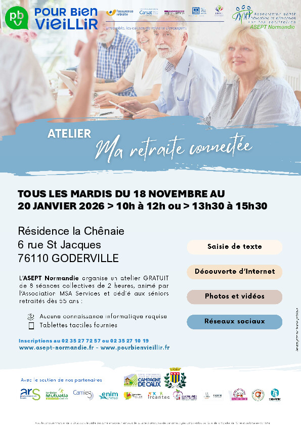 En partenariat avec le CIAS Campagne de Caux, l'ASEPT Normandie organise un atelier d’initiation au numérique de 8 séances à destination des seniors.