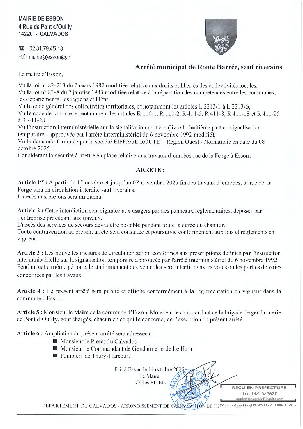 Nous vous informons que la mairie d'Esson a changé d'adresse électronique. Dorénavant, pour toute correspondance par email, veuillez utiliser la nouvelle adresse suivante : mairie@esson.fr.
