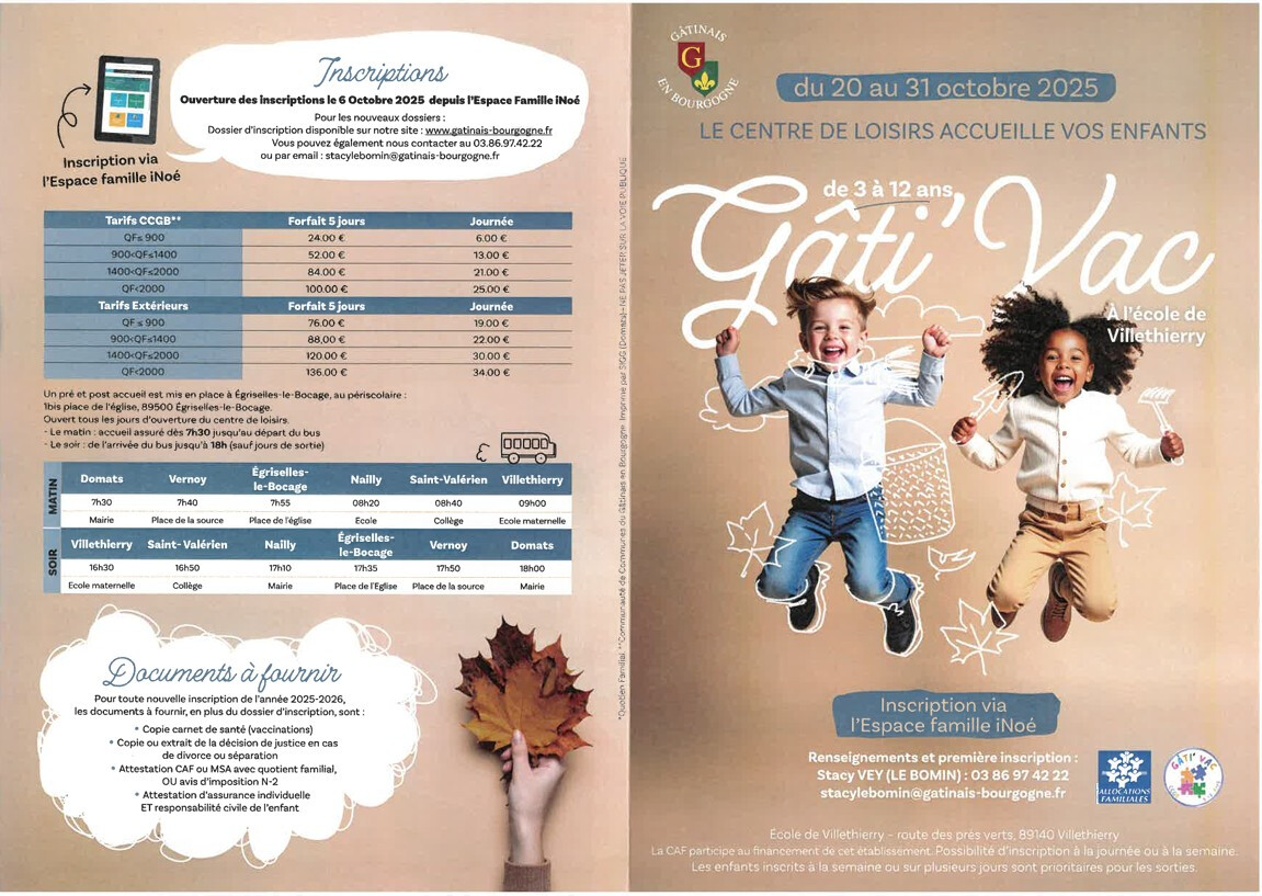 Le centre de loisirs de la Communauté de communes du Gâtinais en Bourgogne ouvrira ses portes du 20 au 31 octobre 2025