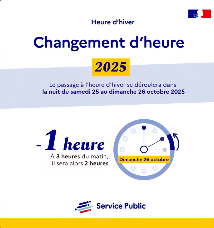 Dans la nuit du samedi 25 octobre au dimanche 26, nous passons à l'heure d'hiver.