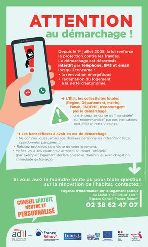 En cas de doute suite à un appel, un courrier ou un email, et avant de signer un devis de travaux, prenez contact avec l’ADIL, Agence départementale d’information sur le logement,