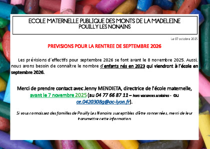 Aussi, nous avons besoin de connaître le nombre d’enfants nés en 2023 qui viendront à l’école en septembre 2026.