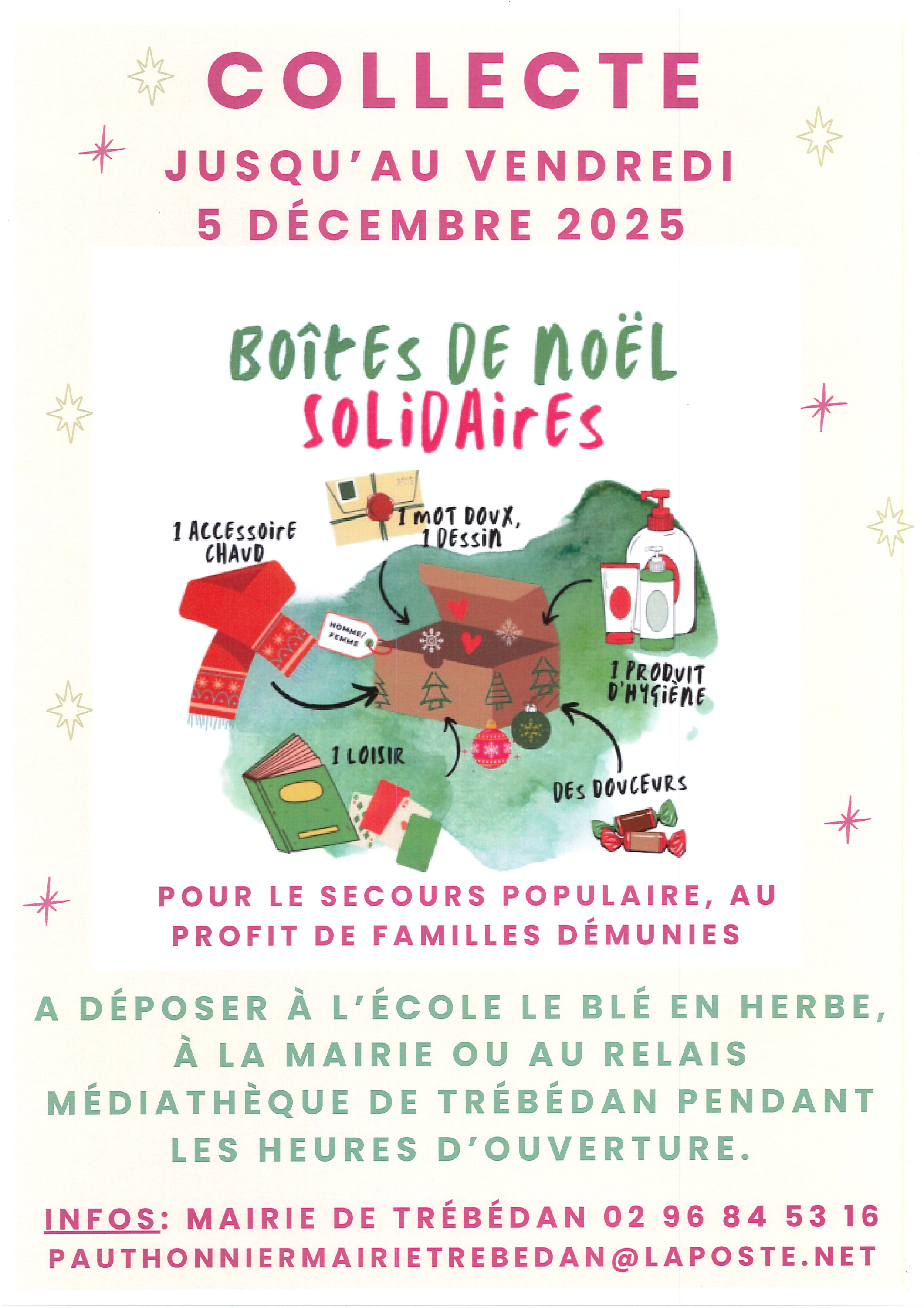 Dès demain vendredi 13 décembre vous pourrez contacter le secrétariat de la Mairie de Trébédan