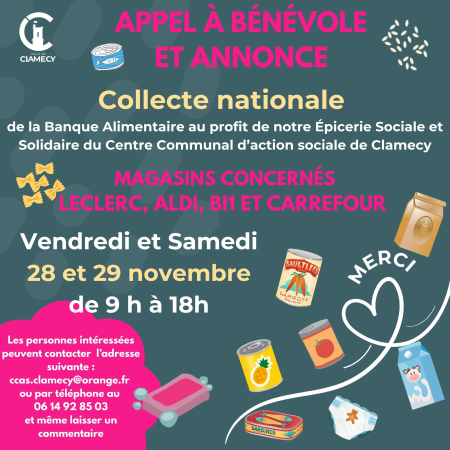Les vendredi 28 et samedi 29 novembre 2025, la grande Collecte Nationale de la Banque Alimentaire revient à Clamecy !