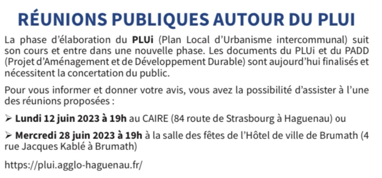 Retrouvez tous les documents du projet de PLUi arrêté sur le site internet dédié : https://plui.agglo-haguenau.fr/dossier-arrete/