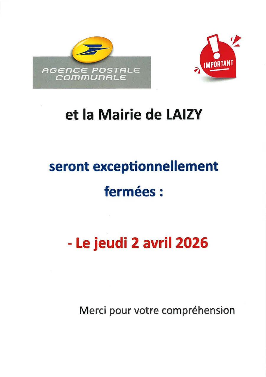 Pour plus d'informations, prendre contact avec la mairie par mail : mairie-de-laizy@wanadoo.fr