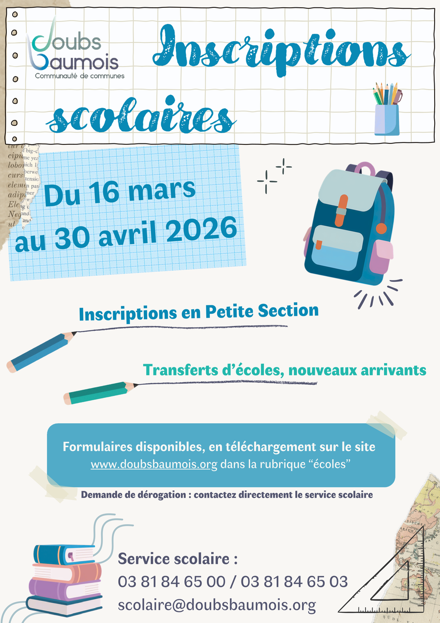 Pensez à inscrire vos enfants auprès de la CCDB via les formulaires accessibles sur leur site jusqu'au 30 Avril !