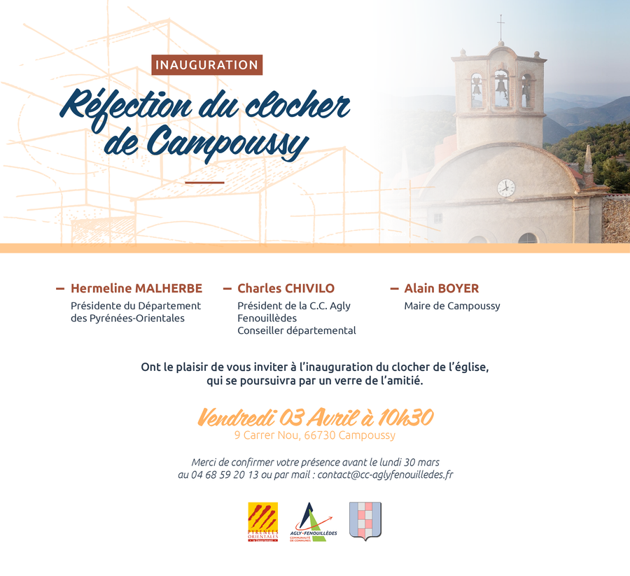 La municipalité a le plaisir d’inviter l’ensemble des habitants à participer à l’inauguration officielle de la place rénovée et du clocher du village.