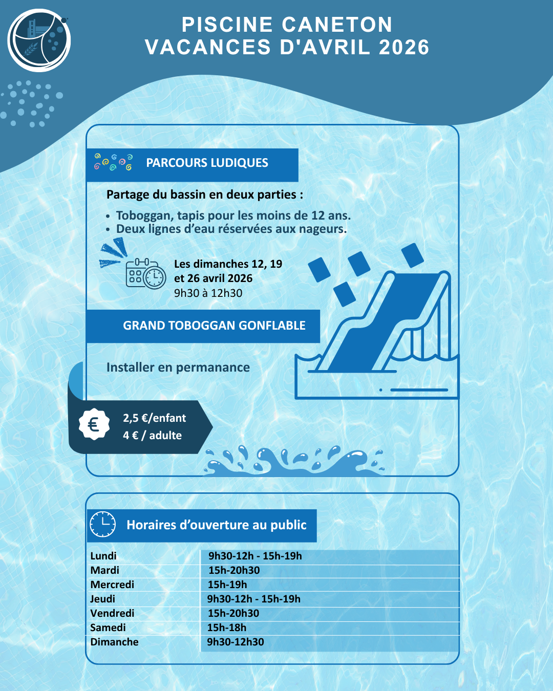 Animations : toboggan gonflable géant en permanence et parcours ludiques les dimanches matin [cite : 1].