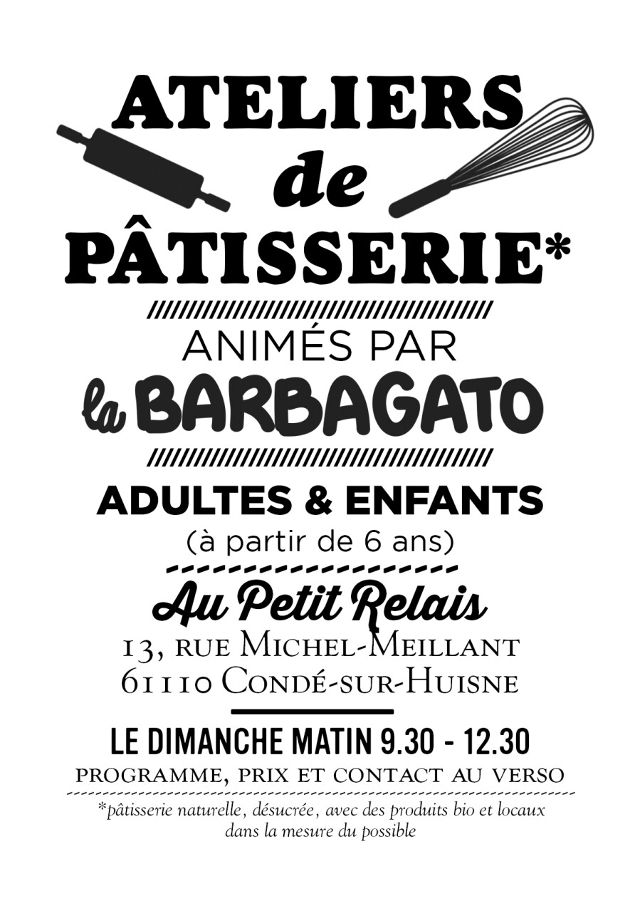 Barbara Pissere, fondatrice de La Barbagato, propose des ateliers de pâtisserie 🧁 à destination des adultes et des enfants à partir de 6 ans, qui se tiendront le dimanche matin de 9h30 à 12h30, dans la cuisine du Petit Relais situé au 13 rue Michel Meillant, à proximité de la médiathèque.