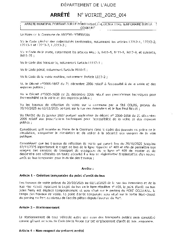 Des travaux de voirie Rue des Amandiers et Rue Paul Riquet sont prévus du 20/10/2025 au 02/11/2025.